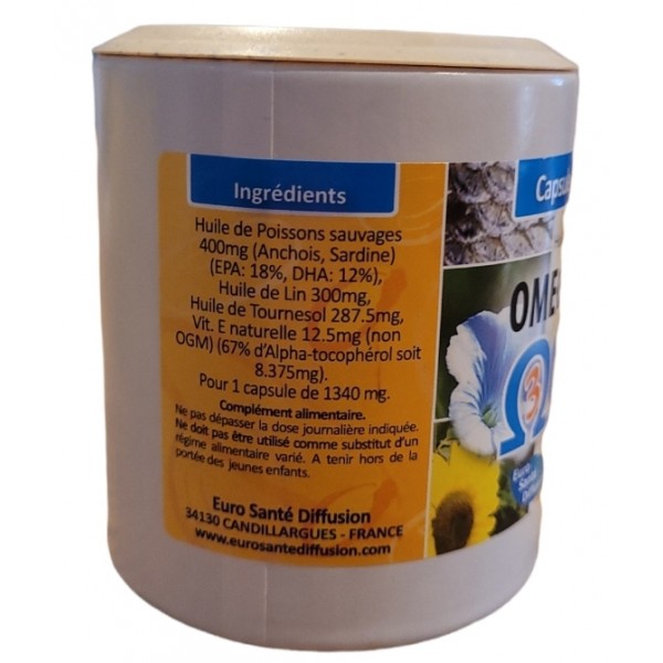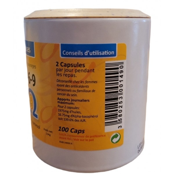 Extrait de poissons sauvages, de lin et de tournesol, Omega 3-6-9 propose une association concentrée d'acides gras indispensables, dont EPA et DHA.