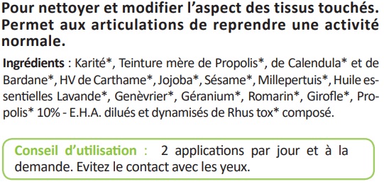 Pour nettoyer et modifier l’aspect des tissus touchés. Permet aux articulations de reprendre une activité normale.