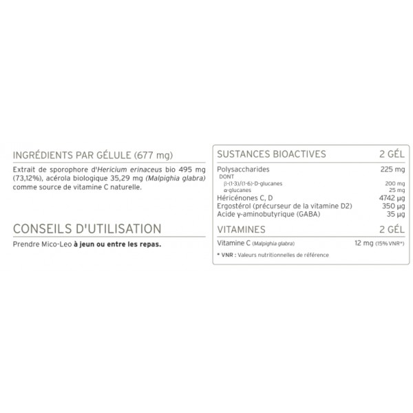 Mico Leo est le complément alimentaire présentant la plus forte concentration de principes actifs de Crinière de Lion (Hericium erinaceus), connu comme “le champignon de l’axe intestin-cerveau”.