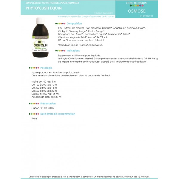 Très satisfaite de ce produit depuis plus de 2 ans ma jument est uniquement sur phytocush. Si je devais plus tard commencer le médicament chimique ( prascent), je ferais moitié phytocush et moitié médicament car lui convient très bien! Je le conseil en début de maladie et suivi !!